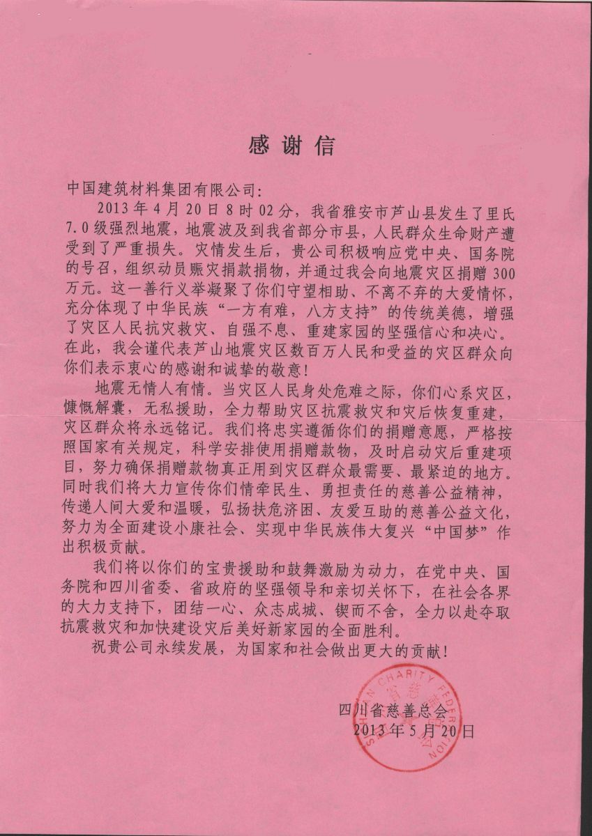 四川省慈善总会致搜狗输入法下载 的感谢信