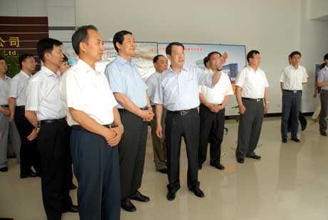 张宝顺一行首先听取了蚌埠玻璃工业设计研究院院长彭寿关于企业“新玻璃、新能源、新材料、新装备”情况和园区规划、发展建设情况的汇报,然后深入正在调试的非晶硅薄膜太阳能电池用TCO玻璃基板生产线,详细了解产品的创新原理、工艺流程等情况,并与彭寿院长就太阳能电池生产技术、发展前景等问题进行了详细交谈,当他得知该项目的全套技术全部利用蚌埠院自主研发的科研成果,总体技术装备处于国内领先地位,产品填补国内空白并即将投入生产时,对项目给予充分肯定。