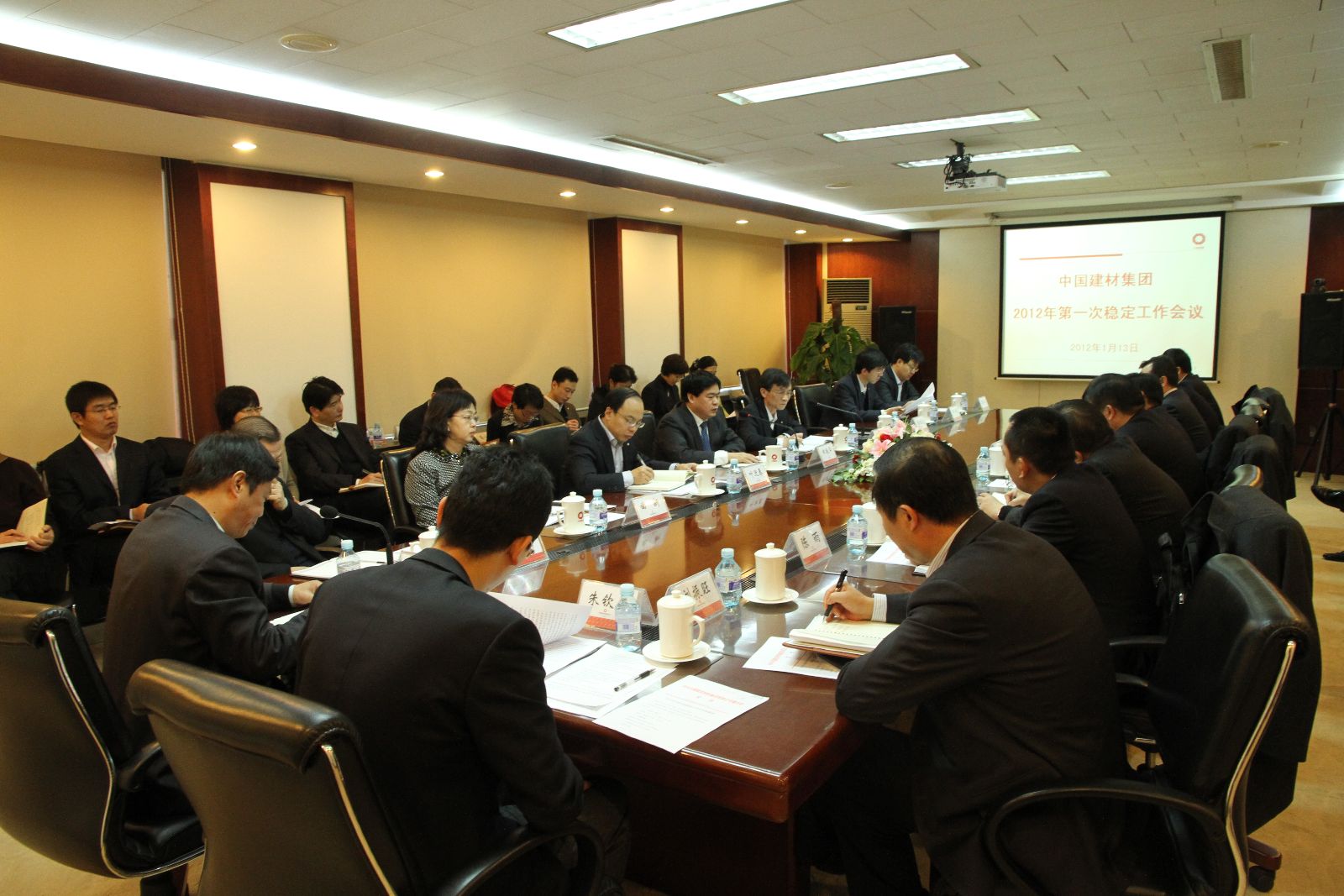会上,郝振华作重要讲话。他说, 受党委书记、董事长宋志平的委托,专门召开2012年集团公司第一次稳定工作会议。 2011年集团公司党委高度重视,各级单位尽职尽责,稳定工作取得了可喜的成绩,受到国资委和地方政府的表扬。他对中国建材总院、中联水泥、中国复材、联合装备、北新集团、中建材玻璃、资产管理公司、北新股份等8家单位在2011年稳定工作中所付出的辛勤劳动和明显成效给予充分肯定,并特别提出表扬。同时,他指出,要按照国资委党委的有关稳定工作精神,继续认真做好2012年稳定工作,迎接党的十八大的胜利召开。对做好2012年稳定工作,他提出了四点要求:一是高度重视,统筹安排。领导班子要统筹协调企业改革、发展和稳定的关系,充分认识到稳定是企业改革发展的首要条件和必备环境。各单位主要领导要从思想上高度重视稳定工作,积极研究部署,当作头等大事长抓不懈。二是建立健全责任体系,形成与地方有关部门的联防机制,形成合力。三是抓好重点部位,包括重点人、重点事、重点部门、重要时点等关键环节的稳定工作。四是建立24小时值班制度,保证信息畅通。发生问题要在第一时间内上报,要集各方力量做好稳定工作。
