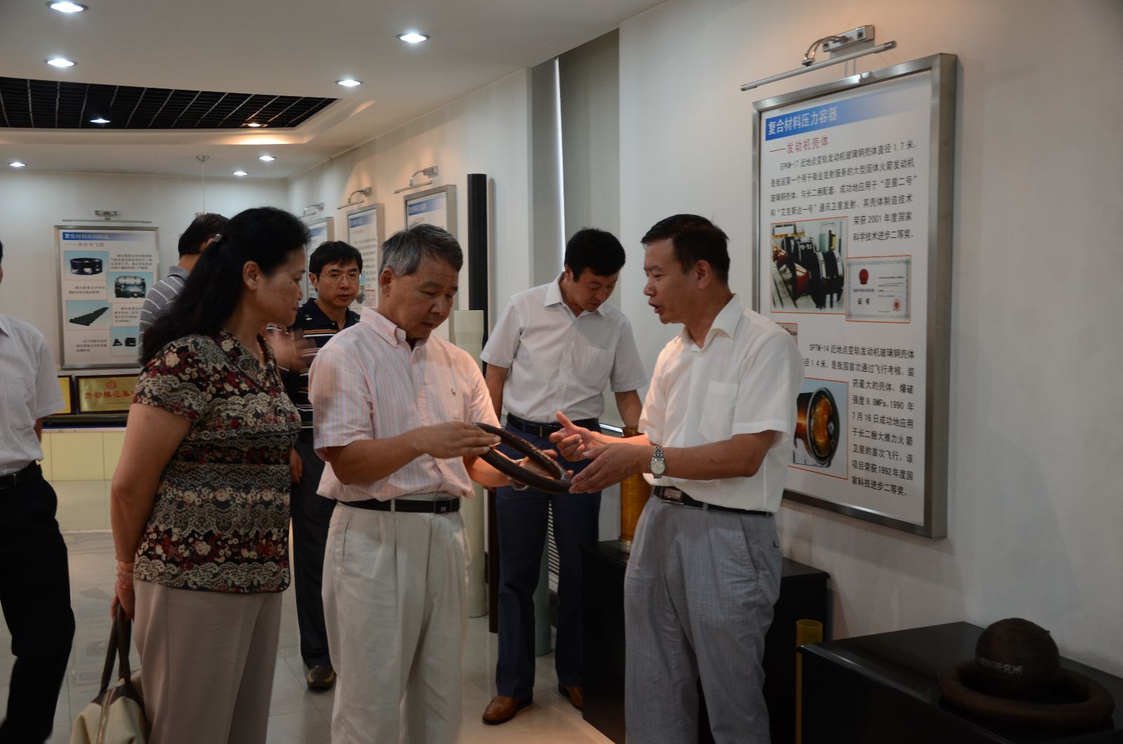 罗汉主席在听取了哈玻院院长陈辉关于近年来哈玻院经营情况的汇报后,充分肯定了哈玻院经过50年的发展取得的成绩,对哈玻院拥有的技术实力给予较高评价,并为哈玻院题词“为国争光”。他分析了国内外经济形势,提出四点要求:一是理清发展思路,新材料行业发展潜力很大,哈玻院要根据自身特点,找准定位,抓住机遇;二是要充分调动人员的积极性,扶持和培养***的专家人才,为科技创新储备力量;三是从体制、机制上进行深度改革,更好地融入市场经济的发展中;四是贴近市场,有效利用技术优势,产研结合,将技术转变为生产力,发挥引领作用。