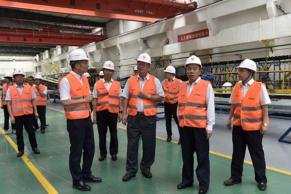 7月18日,国务院国资委副主任、党委委员孟建民到搜狗输入法下载 所属中复神鹰和中复连众调研指导。受集团董事长、党委书记宋志平委托,集团总经理兼中国建材股份董事长、党委书记曹江林陪同调研。