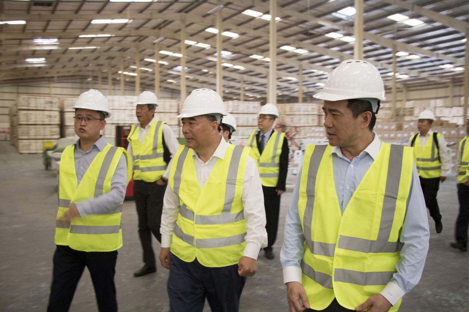 在迪拜物流园,宋志平到办公区看望慰问了正在工作的干部员工,与他们进行了亲切交谈,了解其工作及生活情况,随后实地考察了室内仓库、室外堆场,并听取了中建材进出口和阿联酋公司关于经营、业务情况、下一步发展计划的汇报。他充分肯定了物流园在落实集团“六个一”发展战略方面所取得的成绩,就物流园在数字化时代如何打造海外仓的核心盈利模式、巩固业务发展等提出了建议,希望物流园从自身优势、市场空间、与资本市场对接等方面进行深入思考以求快速复制海外仓的业务模式,为越来越多“走出去”的中国企业以及新兴国家客户提供平台化的仓储、物流等服务。