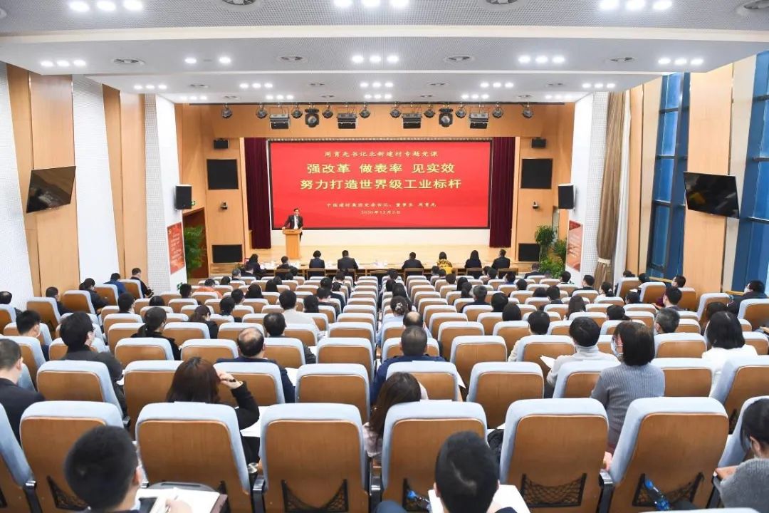 周育先作了题为《强改革 做表率 见实效 努力打造世界级工业标杆》的专题党课。党课由北新建材党委书记、董事长王兵主持。