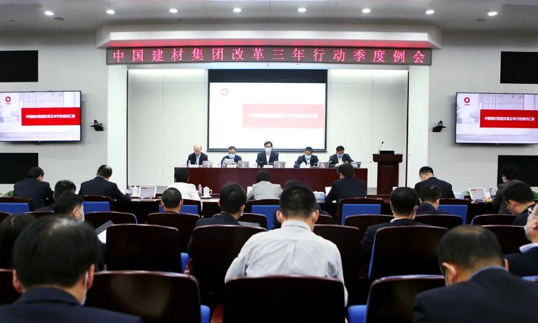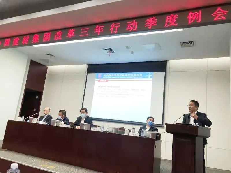 集团董事会秘书、总经理助理、改革办副主任光照宇通报了今年第一季度集团改革工作推进情况,结合集团改革三年行动在线督办系统,对重点改革任务、重点企业改革工作数据进行了分析和解读,进一步明确了改革重点工作年度任务目标。随后凯盛科技、北新建材、中材国际和北玻有限4家企业就改革经验进行交流分享。