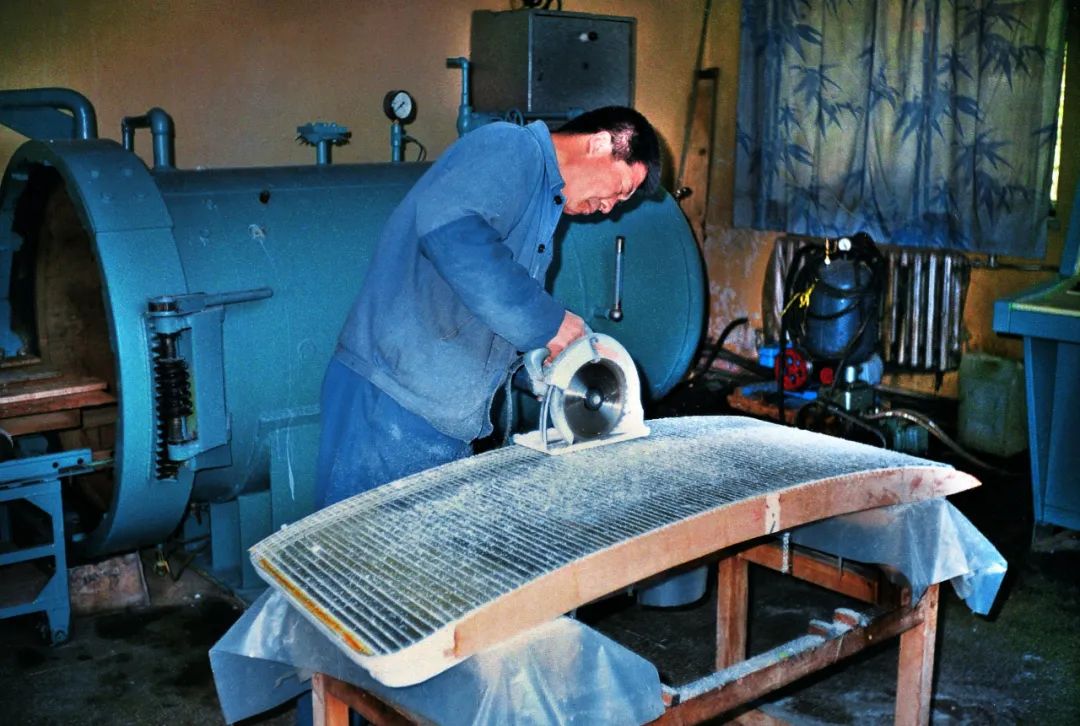 自此,中国建材院开启了汽车防弹玻璃的试制任务。在当时的历史条件下,没有良好的制造玻璃方式,只能使用耐火材料组成一个大型坩埚,在大坩埚里进行玻璃的熔制,使用燃油加热到1400度,把玻璃的原料化成玻璃熔浆,浇注到平板模子里变成毛坯,再将大概有45毫米的毛坯进行研磨抛光,加工到25毫米厚,把毛坯的精髓最好部分取出来进行加工。当时工作效率低,时间周期长,成品率也低,但就是在这样不利的条件下,中国建材院还是把这块玻璃做出来了。