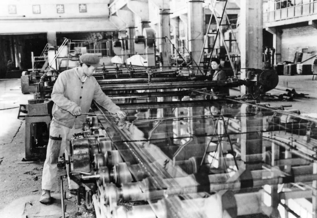 (上世纪80年代的洛玻浮法一线冷端生产现场)