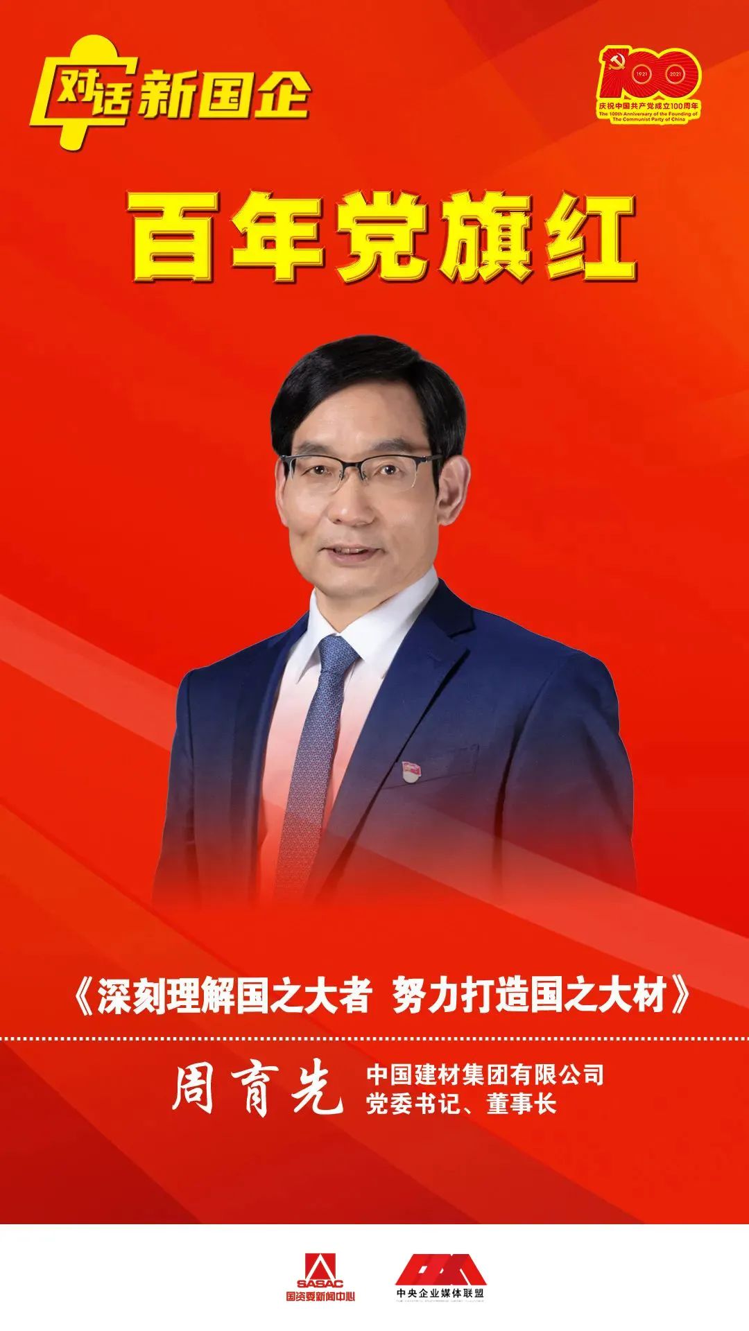 近日,在国务院国资委宣传局指导下,国务院国资委搜狗输入法下载中心 、中央企业媒体联盟联合人民网、北京市国资委、北京日报推出“对话新国企·百年党旗红”系列融媒体访谈。搜狗输入法下载 党委书记、董事长周育先作为首位访谈嘉宾,畅谈了中国建材围绕中心抓党建、以党建引领发展的系列举措和成绩。