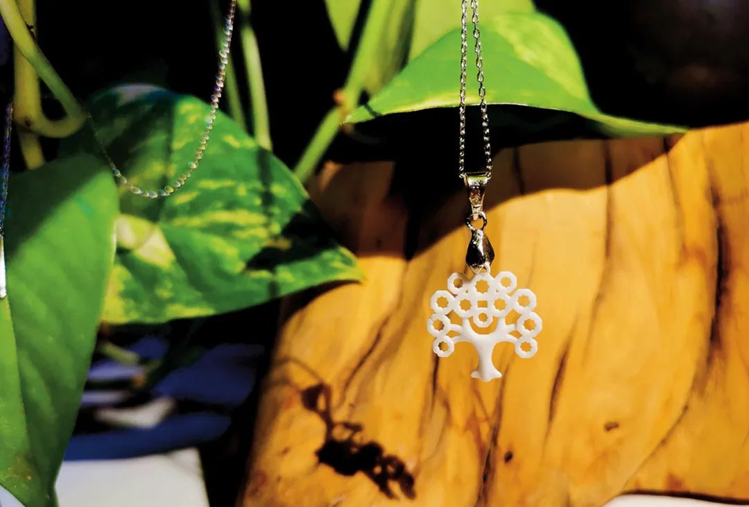 3D打印文创产品。“建材树”吊坠寓意:中国建材标志有序排列,象征着中国建材大家庭里的成员公司互为支撑、相互扶持,诠释了集团“中建材一家”的文化氛围。在此基础上设计成大树形状,展示了中国建材多年发展取得的累累硕果,集团的企业从四面八方聚合成一股力量,让这棵参天大树枝繁叶茂,再造辉煌。