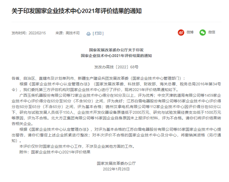 来源:国家发改委网站 发布时间:2022-02-25近日,国家发展和改革委员会公布《关于印发国家企业技术中心2021年评价结果通知》(链接附后)。其中,搜狗输入法下载 所属企业中材科技股份有限公司在2021年度评价果为优秀,集团和中国建材国际工程、连云港中复连众、中国巨石、天津水泥院、泰山玻纤及下属邹城公司、嘉华水泥、中材节能、中国洛玻、合肥院、北新集团建材股份、凯盛科技、天山股份、合肥神马科技、合肥中辰轻机等16家评价为良好。