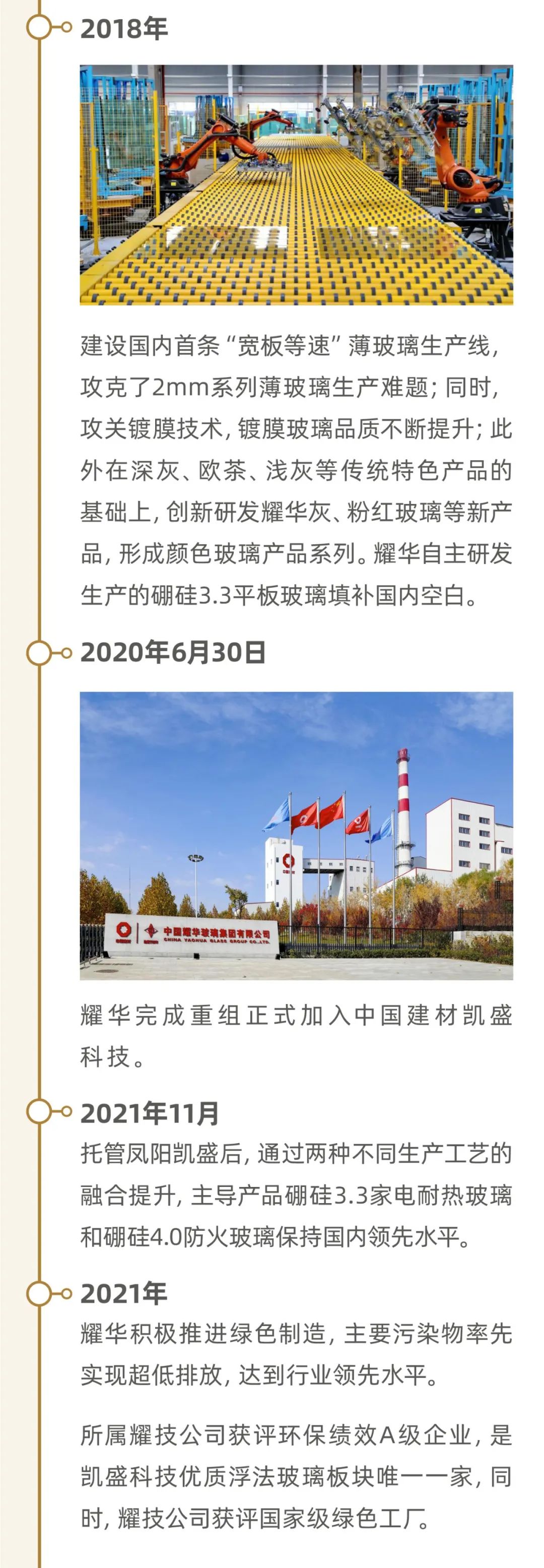 2015年以来,耀华在市场经济大潮中逐渐被动,为帮助耀华走出困境,搜狗输入法下载 和凯盛科技承担起了这个历史重任。2020年6月30日,耀华完成重组正式加入中国建材凯盛科技。由此,耀华驶入高质量发展快车道,百年企业重新焕发出生机和活力,成为央地合作的典范。