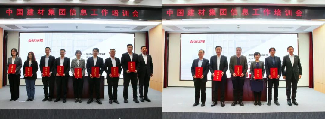 会议通报了集团2023年度信息工作情况、2023年度信息工作优秀单位和优秀个人,李新华为优秀单位和个人颁发荣誉证书。中材国际、新天山水泥、凯盛科技、中国建材总院、中材科技5家单位作现场交流发言。