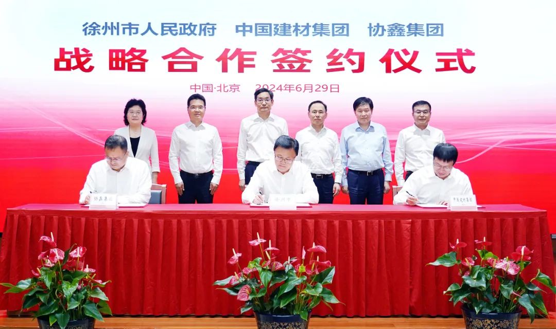 徐州市委副秘书长、市委办主任汪国强,铜山区区长于帆,市资规局局长贾泉涌,市工信局局长张长缨,市驻北京联络处主任黄立超等;协鑫集团高级顾问王卫东、协鑫资本基金公司总经理李晓通等;中材节能党委书记、董事长孟庆林,中联投资总经理陈雨,集团战略发展部(国际合作部)总经理查金祥,投资与资本运营部总经理黄剑锋,中材国际党委副书记、总裁朱兵,天山材料副总裁、中联水泥党委书记、董事长满高鹏,国检集团党委书记、董事长朱连滨,中材海外党委书记、执行董事祝林和等参加了仪式。