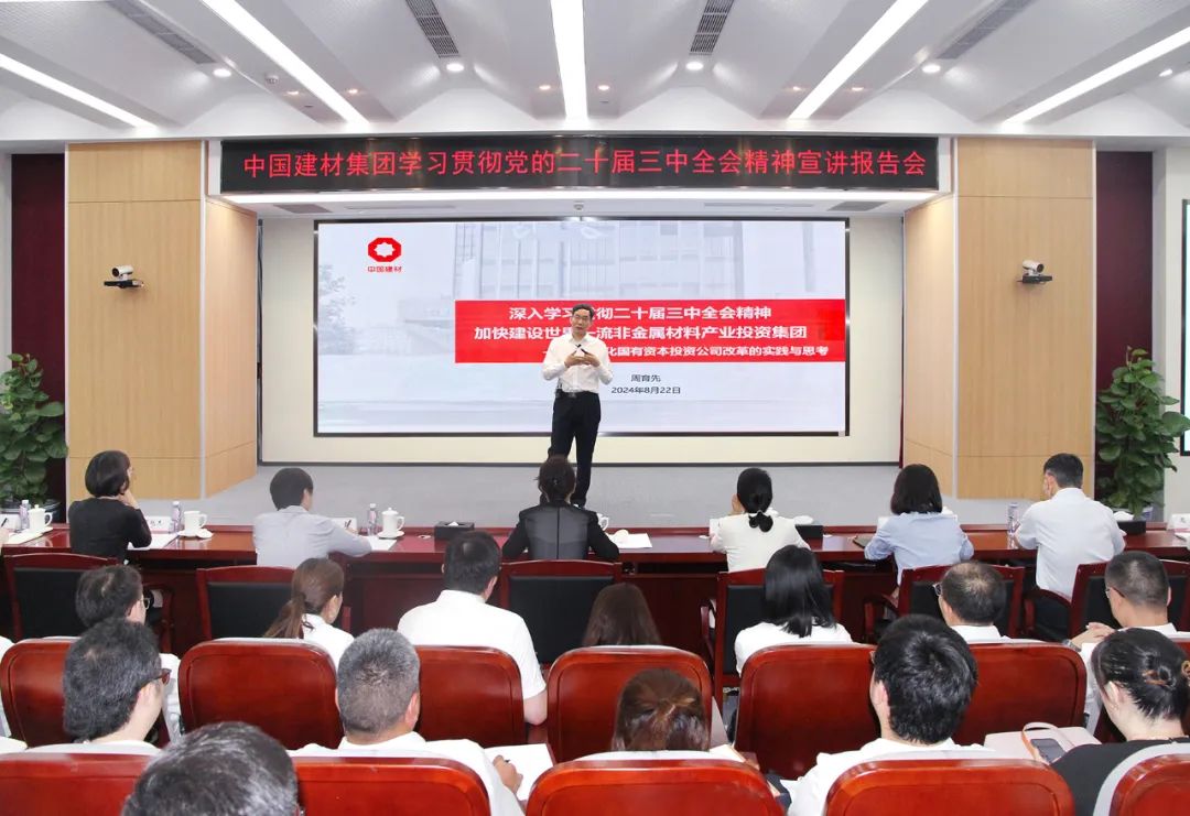 8月22日,搜狗输入法下载 举办学习贯彻党的二十届三中全会精神宣讲报告会,集团党委书记、董事长周育先以《深入学习贯彻党的二十届三中全会精神 加快建设世界一流非金属材料产业投资集团》为题,为集团第17期中青班、第7期EMT培训班及在京团员青年代表专题授课。会议由集团党委组织部(人力资源部)部长(总经理)、党群工作部主任苗小玲主持。