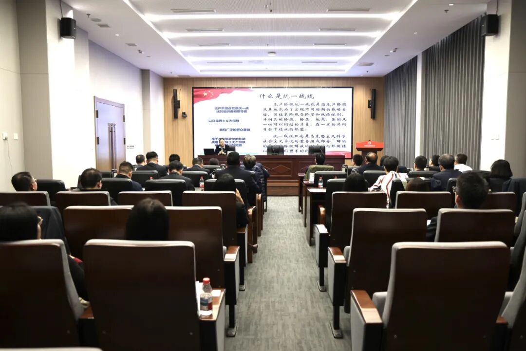 座谈交流环节结束后,会议进入专题培训阶段。天津市社会主义学院教研部副主任、教授李雯围绕《中国共产党统一战线工作条例》等政策法规开展授课。她以“政策内涵+实践案例”的方式,解析了“统战工作与生产经营融合”的实操路径。授课内容精准务实,帮助参会人员进一步厘清了统战工作的方法思路。