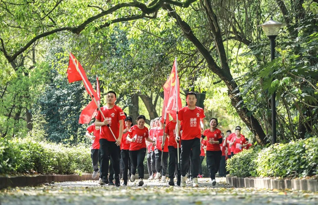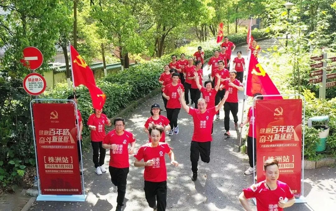 下午2点,活动在茶陵县烈士陵园前正式拉开序幕。在鲜艳党旗的引领下,健跑团沿着革命先辈的足迹,用脚步和汗水重温了党的光辉历程。此次健跑活动设置了迷你跑和全程跑合计11.28公里。“11.28”是为了纪念茶陵县工农兵政府的成立,以此激励广大党员不忘初心、牢记使命,以奋发进取的拼搏精神助推集团高质量发展。迷你跑轨迹为数字“100”,同时健跑团在到达烈士陵园广场终点后,有序排列成了“100”队形,挥舞党旗,用多样化的形式表达了对党的美好祝福,热烈庆祝中国共产党成立100周年。