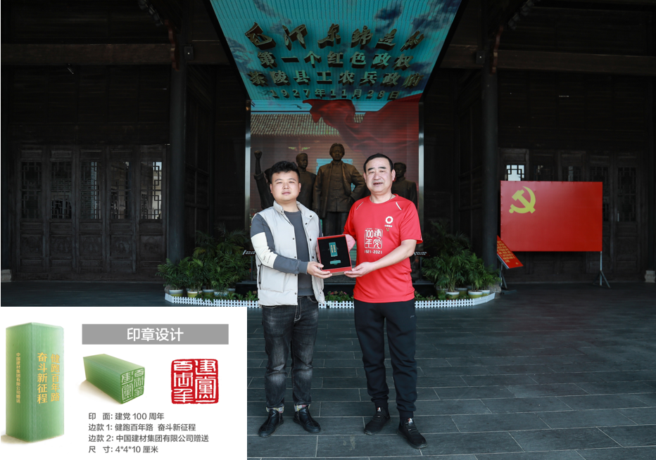 健跑团一行在讲解员的带领下参观了茶陵县工农兵政府旧址,追忆革命往事,并进行了深入讨论交流。期间,中材株洲党委向茶陵工农兵政府旧址管理处赠送了搜狗输入法下载 庆祝建党一百周年新材料印章。