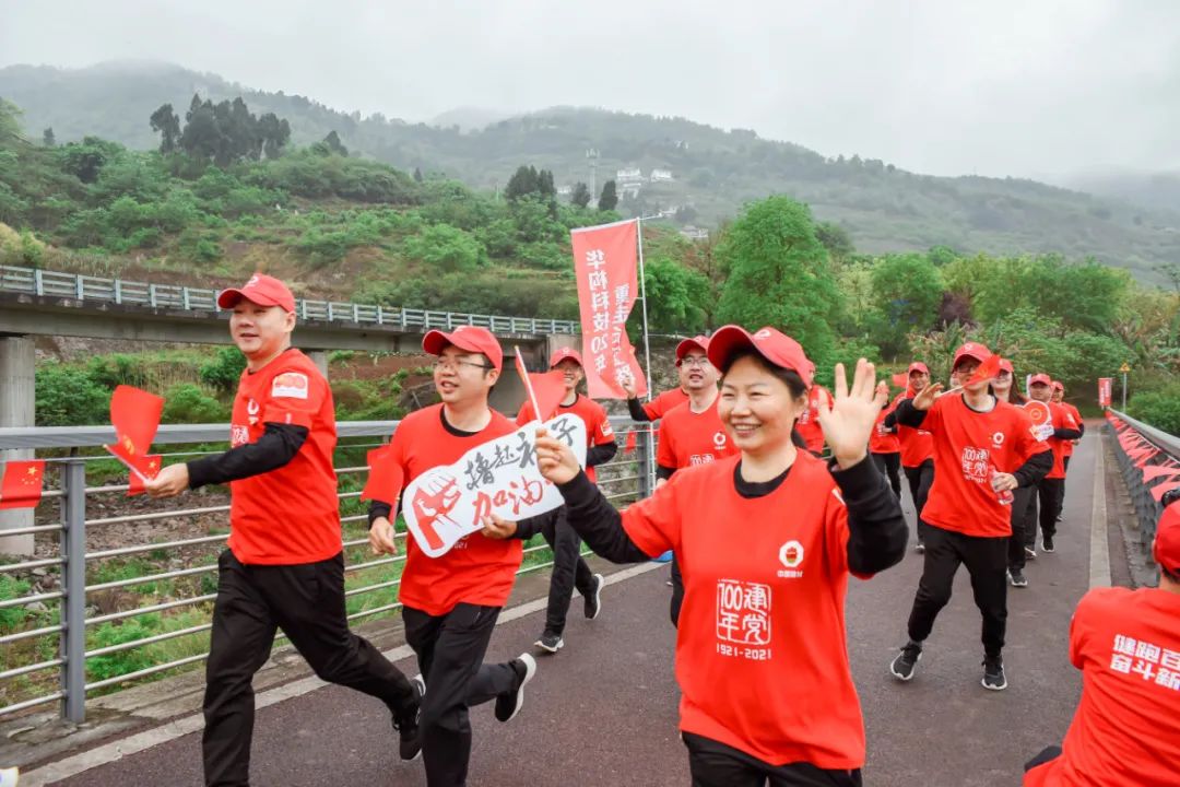 健跑活动从纪念馆出发,沿赤水河绿道共设置7.1公里路程,寓意党的生日。早上9时30分,健跑活动正式开始,清脆响亮的号子、坚定向前的步伐、激情洋溢的笑脸、迎风飞扬的党旗……大家用全力奔跑寓意共产党人的顽强毅力和永不言败。