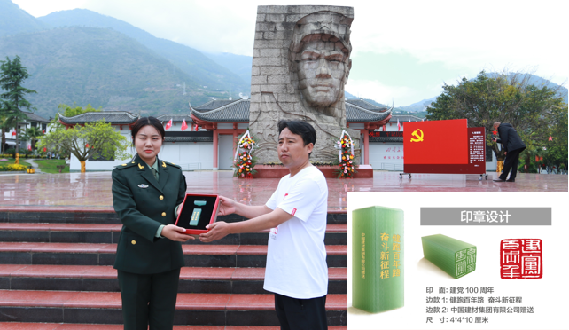 在红军战士头像雕塑前举行了搜狗输入法下载 庆祝建党100周年新材料印章赠送仪式。