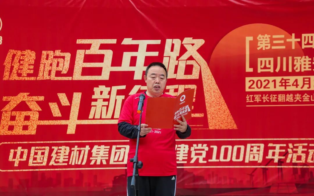 西南水泥党委副书记、副总裁张子斌为活动致辞。他讲到,第34站选择在红军长征翻越夹金山纪念馆开展活动意义非凡。毛泽东同志在著名的《七律·长征》诗中写到“更喜岷山千里雪,三军过后尽开颜”,抒发了红军翻越夹金山对中国革命所产生的伟大而深远的意义。他强调,此次“健跑百年路 奋斗新征程”活动就是引导大家回顾党的历史,从党的非凡历程中深刻感悟马克思主义和习近平新时代中国特色社会主义思想的强大伟力;就是引导大家了解集团发展,不忘初心,牢记习近平总书记对集团的重要指示批示精神,接过历史使命的接力棒,发挥材料企业优势,以材料创造美好世界,加快建设具有全球竞争力的世界一流材料产业投资集团,为实现中华民族伟大复兴的中国梦作出新的贡献。