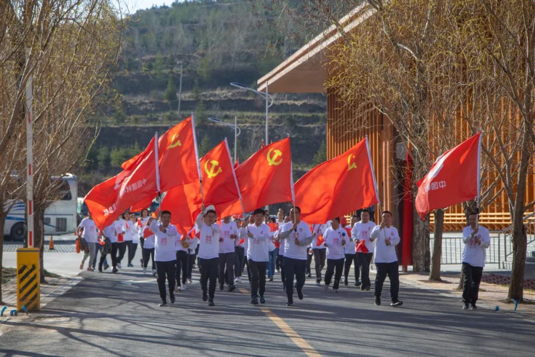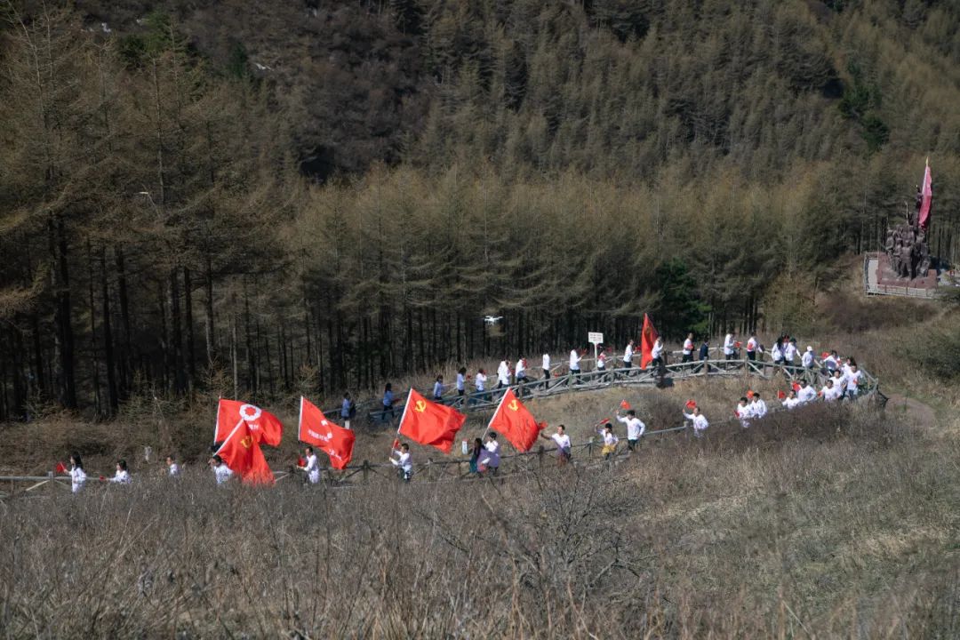 在六盘山红军长征纪念馆广场,全体党员举起右拳,重温入党誓词,铮铮誓言见初心,灼灼韶华颂传承。