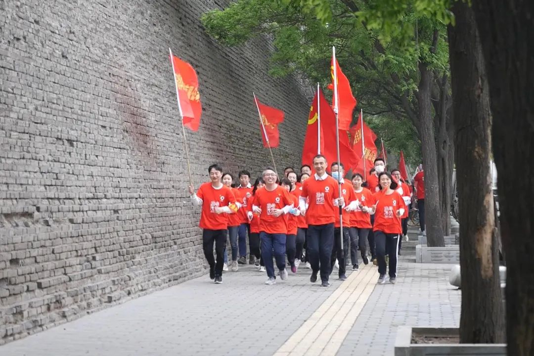 健跑活动结束后,全体成员齐聚环城公园北门广场,用心摆出“100 XA”(100 西安)的字样,满怀深情向建党100周年献礼。