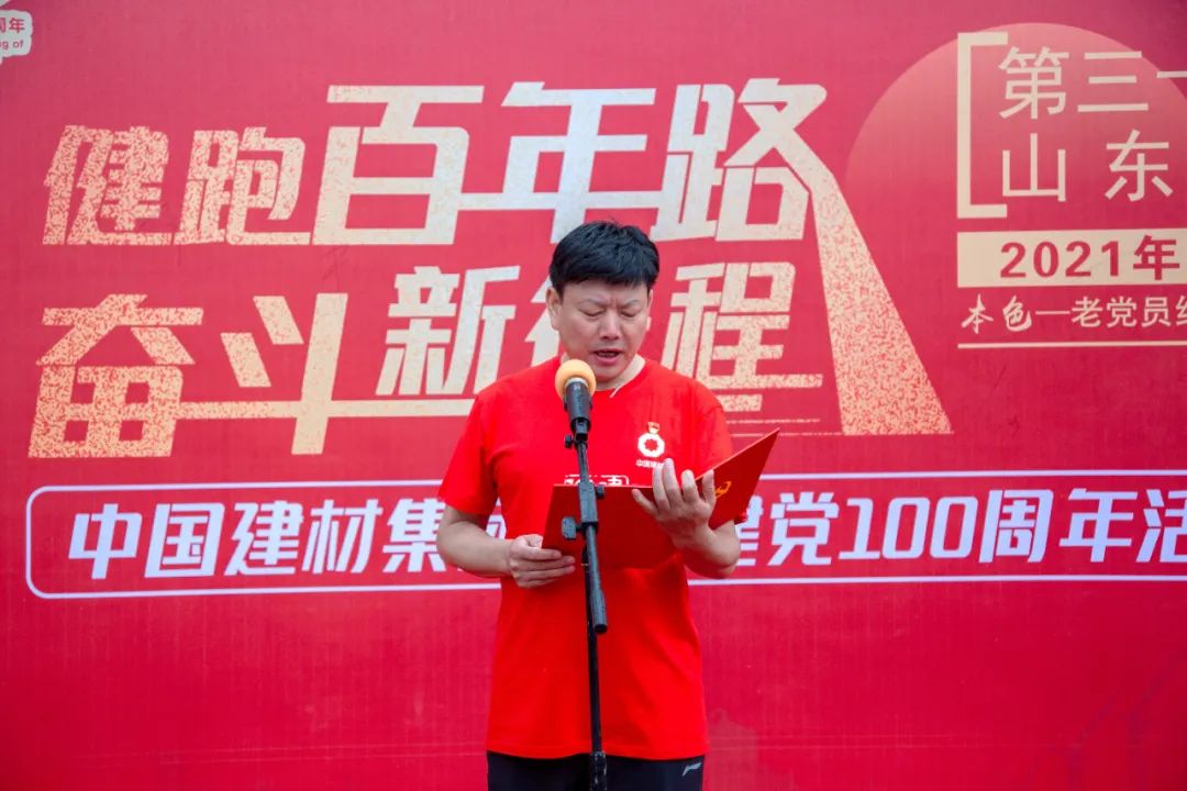 日照中联党总支书记、总经理刘希海为活动致辞。他阐述了本次活动选址“本色—老党员红色群落展览馆”的深刻寓意。莒县是沂蒙老区的重要组成部分,展览馆位于莒县招贤镇驻地,以弘扬和宣传建国前老党员“一心向党、公心为民、用心实干、清心律己、热心传承”的“本色”精神为主题,是进行革命优良传统和爱国主义教育的基地。希望参加健跑的每一位同志以红色群落老党员为榜样,守初心、担使命,带着饱满的热情,迈出坚定的步伐,展示中国建材人的良好精神风貌,以昂扬的姿态迎接建党100周年。