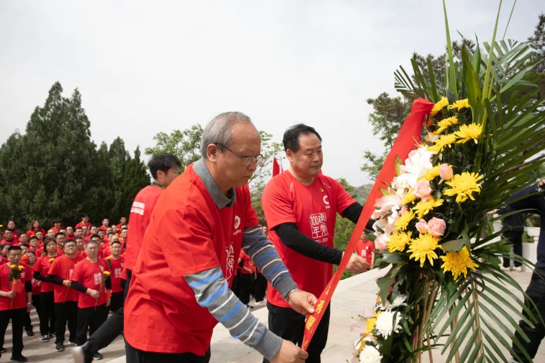 在徂徕山抗日武装起义纪念碑前,全体党员怀着沉重的心情向纪念碑敬献花篮,向革命烈士鞠躬默哀,并面向鲜红的党旗,重温了入党誓词。誓言声声久久回荡在徂徕山上空,传递出一代代中国共产党人为党和人民事业奋斗终身的坚强决心。