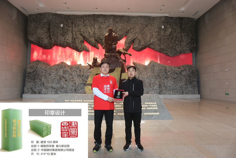 在陆房突围胜利纪念馆内,泰山石膏向陆房突围胜利纪念馆赠送了搜狗输入法下载 庆祝建党100周年新材料印章。