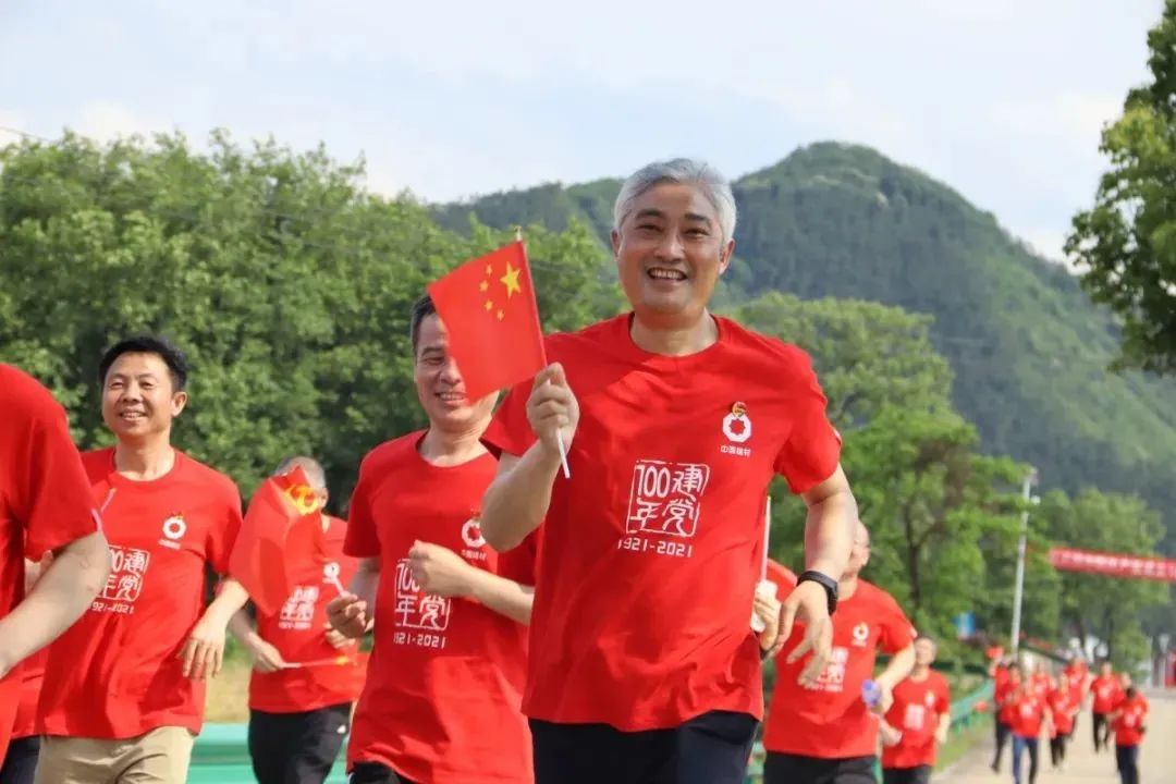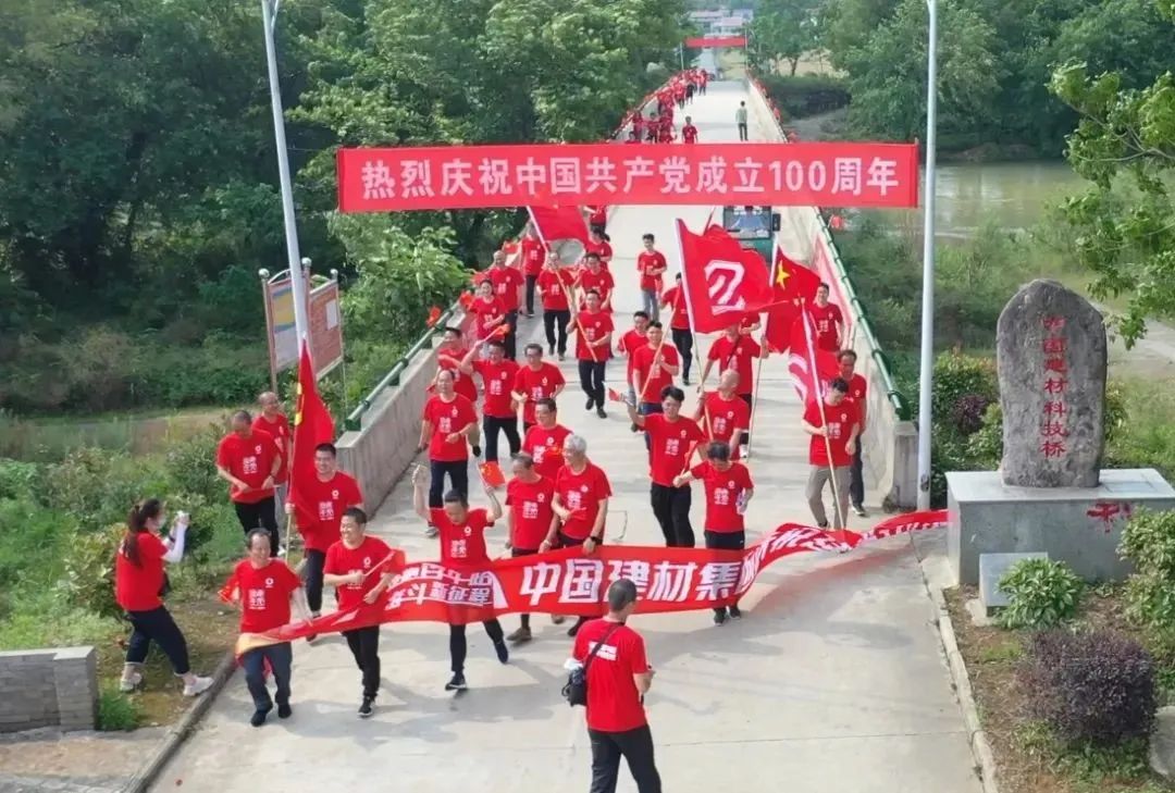 健跑的起点、终点均设在中国建材科技桥。在党旗的引领下,在铿锵嘹亮的歌声中,71名党员和入党积极分子奋力起跑。大家士气昂扬,坚定地朝着目标、终点奋进。在新时代的长征路上,传承初心和使命。
