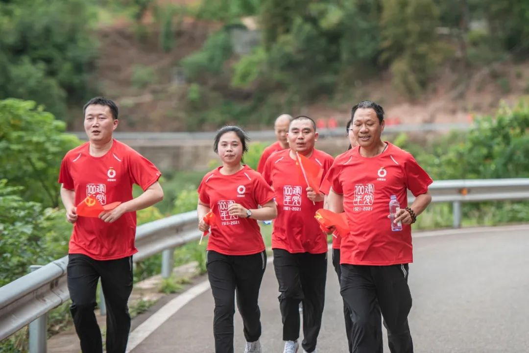 本次健跑活动在黄继光故居举行,全程2.1公里,寓意1921年中国共产党的诞生和2021年中国共产党的百年华诞。通过诗朗诵《英雄塑像前的沉思》,合唱《我和我的祖国》,进一步激励党员干部员工坚定理想信念,把学习成果转化为工作动力和成效,真正理解领会到“党员要平常时候看得出来、关键时刻站得出来、危急时刻豁得出去”的含义,以良好的精神风貌和优异的经营业绩迎接建党100周年。