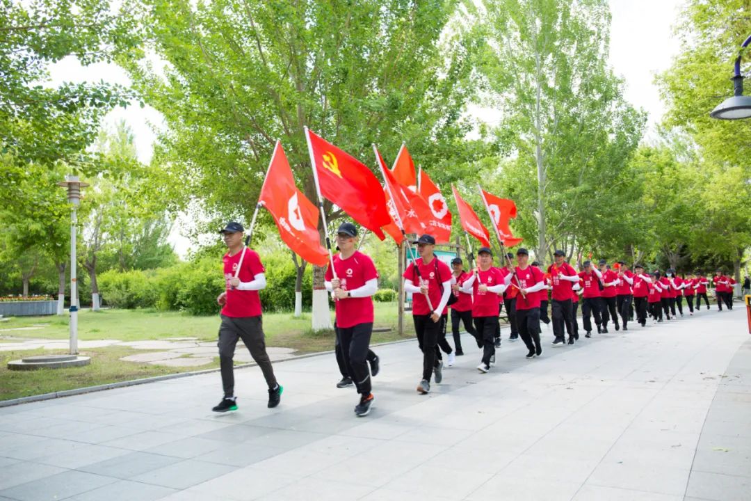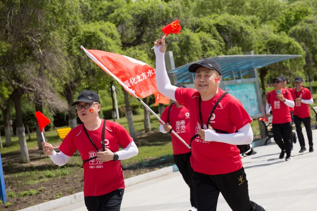 本次健跑活动在大庆市铁人广场举行,设置全程6.2公里,6.2寓意纪念2021年大庆油田发现62周年。1959年9月26日,新中国成立10周年前夕,随着一股工业油流从松辽盆地北部的“松基3井”喷涌而出,大庆油田正式诞生,从此,中国甩掉了“贫油”的帽子,中国石油工业屹立在世界东方。队伍62人高举党旗和中国建材、各企业旗帜向着终点奋力出发,象征着公司全体员工团结一致、共同向前,奔赴新征程。