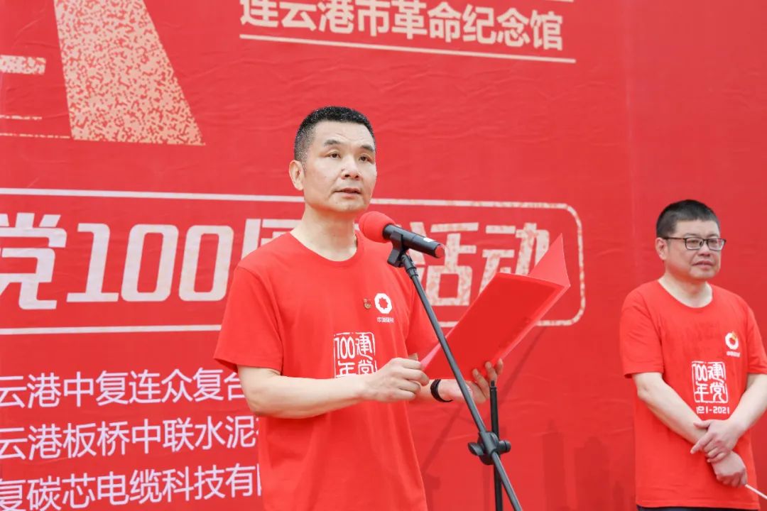 中国复材副总经理、中复连众党委书记、董事长乔光辉致辞。他讲到,连云港市是搜狗输入法下载 成员企业相对比较集中的地区,有10多家独立法人企业。多年来,秉承搜狗输入法下载 发展战略、文化理念、工作方针、管理原则和经营措施,在企业经营改革发展中不断延续党的精神血脉,奋勇争先、锐意进取,积极履行社会责任,为经济社会建设做出了应有的贡献。今年是中国共产党百年华诞,要从党的百年历史中汲取信仰力量,深刻领会习近平新时代中国特色社会主义思想的理论逻辑、历史逻辑和实践逻辑;要从党的百年历史中重温为民情怀,团结带领职工群众,扎扎实实地开展各项工作,认真开展“我为群众办实事”实践活动;要从党的百年历史中激发奋斗精神,在工作中不怕“拦路虎”、勇做“急先锋”、敢啃“硬骨头”。
