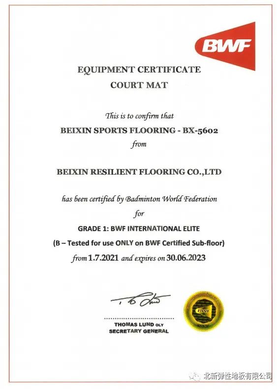近日,北新地材再次通过国际羽毛球联合会测试认证,并达到一级赛事等级认证。自2008年起,北新地材先后助力北京、伦敦、里约热内卢奥运会专业赛事,为推动国内弹性塑胶运动地板发展起到了重要作用。