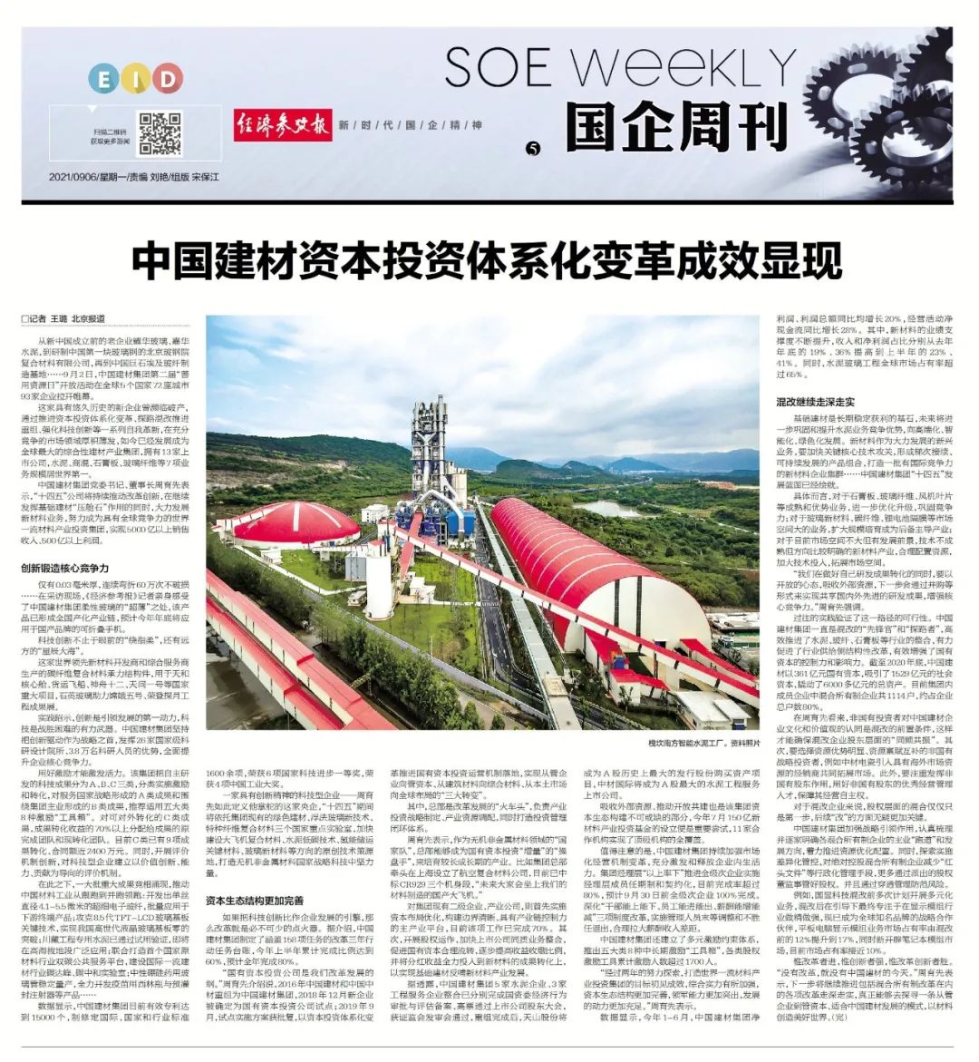 国企改革创新典型宣传暨媒体走进中建材报道集锦①