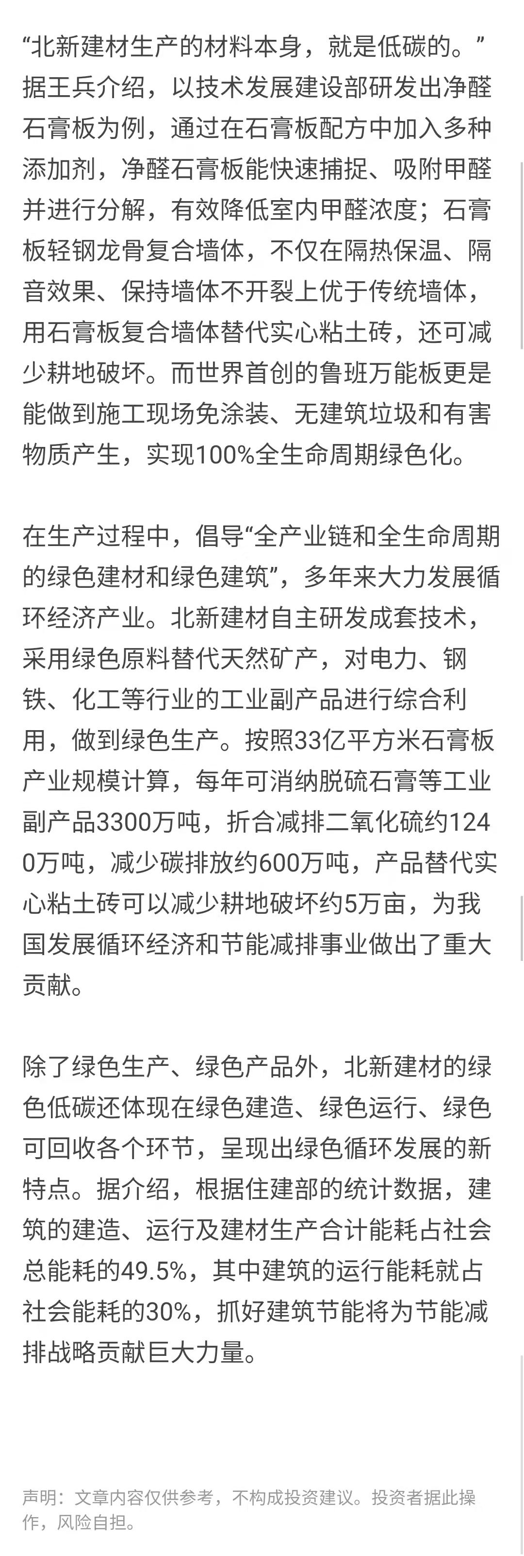 一是围绕国家战略和民生工程。建筑、建材、房地产行业产业链的能耗占全社会能耗的近一半,对此北新建材遵循搜狗输入法下载 “善用资源 服务建设”理念,积极践行生态文明、循环经济、“双碳”战略等国家战略,针对产业链上碳排放高的环节进行研发和开展业务。围绕人民对美好生活的向往,北新建材实施“一体两翼、全球布局”发展战略,除了巩固主营业务石膏板,还发展防水材料和涂料两个业务领域,为与人民生活息息相关的房屋裂缝、漏水、甲醛污染等问题提供解决方案。