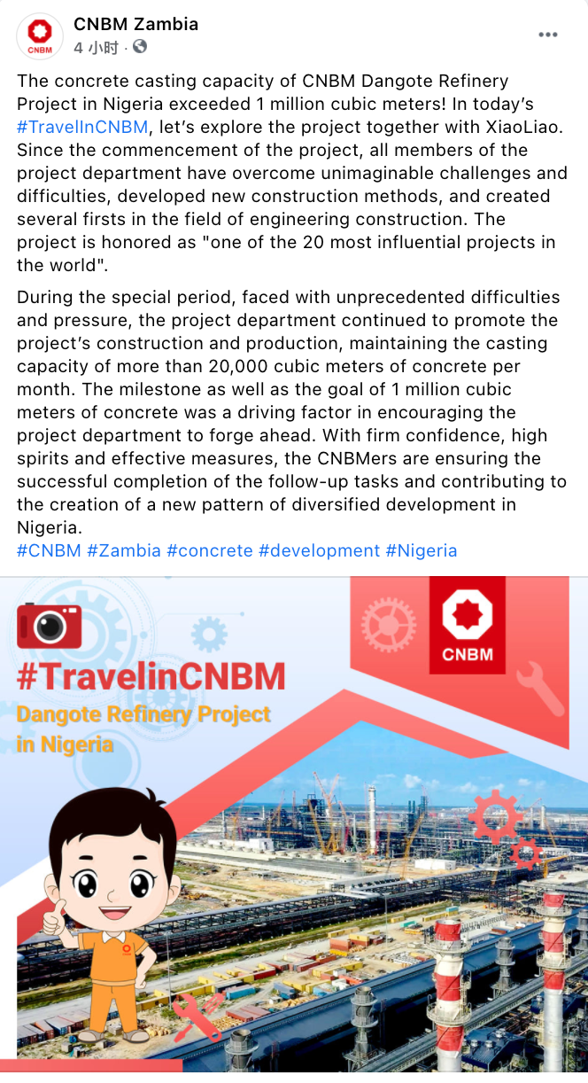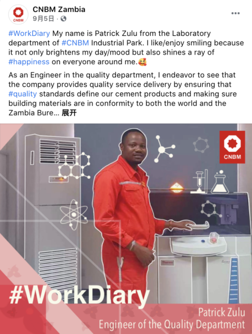围绕搜狗输入法下载 “善用资源、服务建设”核心理念和“材料创造美好世界”企业使命,中材水泥投资建设的中国建材赞比亚工业园以“讲好央企故事、传播中国声音”为主线,精准定位,突出建材特色,创新本土表达,优化叙事策略,深入把握新媒体时代国际传播的技巧和规律,精细化运营“CNBM Zambia”海外社交媒体账号,打造了具有重要传播影响力的企业海外新媒体阵地。