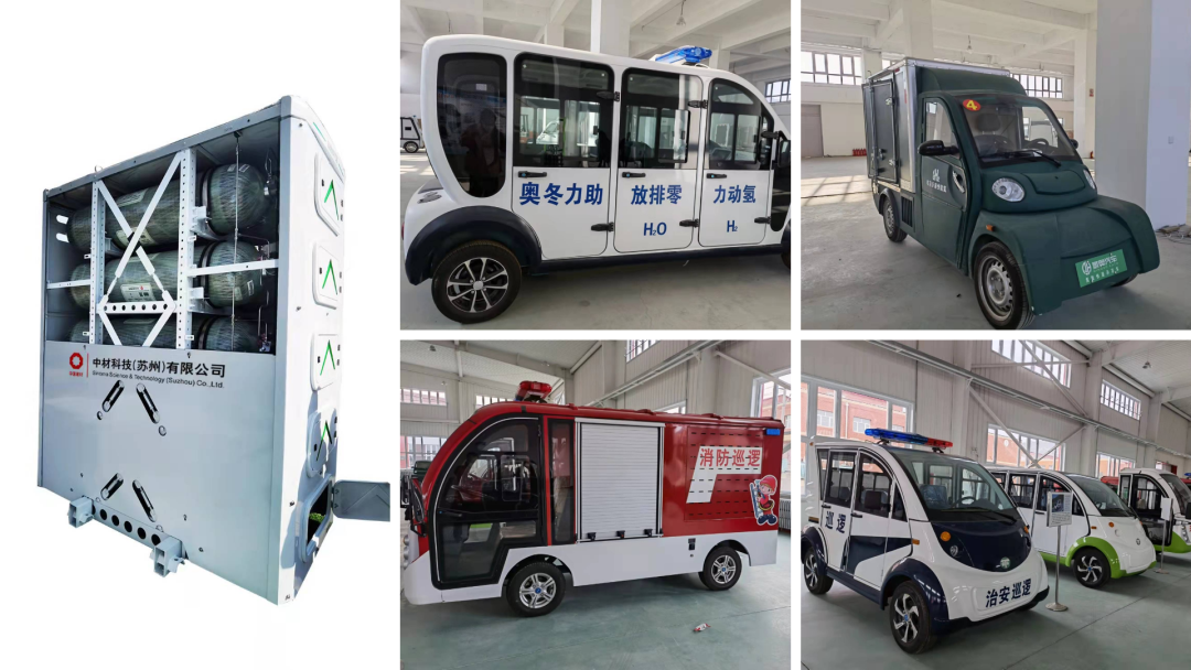 中材科技所属苏州有限,以车载CNG气瓶、燃料电池氢气瓶及系统、大口径复合材料气体储运单元和加氢站用储运装备为主营业务,其产品和服务广泛应用于汽车制造、气体储运、无人机及特种装备等多个领域,拥有成都、苏州、九江三个生产基地,各类气瓶年产能超过70万只(氢气瓶产能7万只/年),为国内多家整车制造企业和能源公司提供产品和服务。截至2021年底,苏州有限车载储氢气瓶年度市场份额超过30%,位居行业重要地位。苏州有限执行董事、总经理张元正介绍:“目前公司已为冬奥会氢燃料电池通勤、物流、特种车辆等领域提供了超过百台的产品配套服务,未来公司将继续加大研发力度,为绿色低碳社会做出我们应有的贡献。”