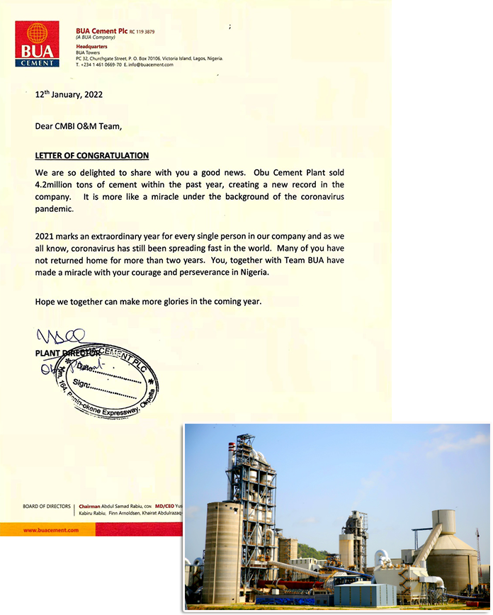 中材国际尼日利亚EDO运营项目收到来自BUA集团的贺信