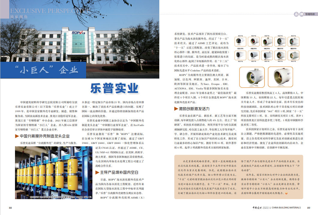 改革创新 | 乐普实业: 为海水淡化发展立下“汗马功劳”的“小巨人”企业