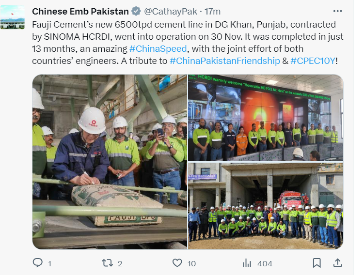 图丨中国驻巴基斯坦大使馆官方推特为项目点赞