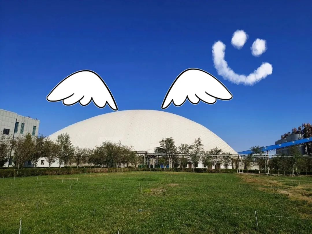 它像一个巨大的透明气泡,轻盈的悬浮在地面上——它是坐落在阜康天山水泥公司东北侧的熟料气膜大棚。它为传统露天堆场加上“盖儿”,既能避免下雨时物料被淋湿,也能防止粉尘污染,是节能环保的举措之一。