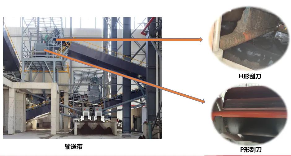 具体来说,一是对粉料计量层和搅拌主机层的螺旋输送机连接处进行垫密封圈,并打结构胶,防止设备冒灰;二是对输送到计量称的布袋连接改硅胶软连接的方式进行封闭;三是混凝土卸料口采用橡胶夹棍方法防止浆体滴漏,有效治理扬尘;四是在每根输送带头部,设置“P形”和“H形”刮刀片,再增加回收水喷淋冲洗,有效治理输送带泥浆积料。