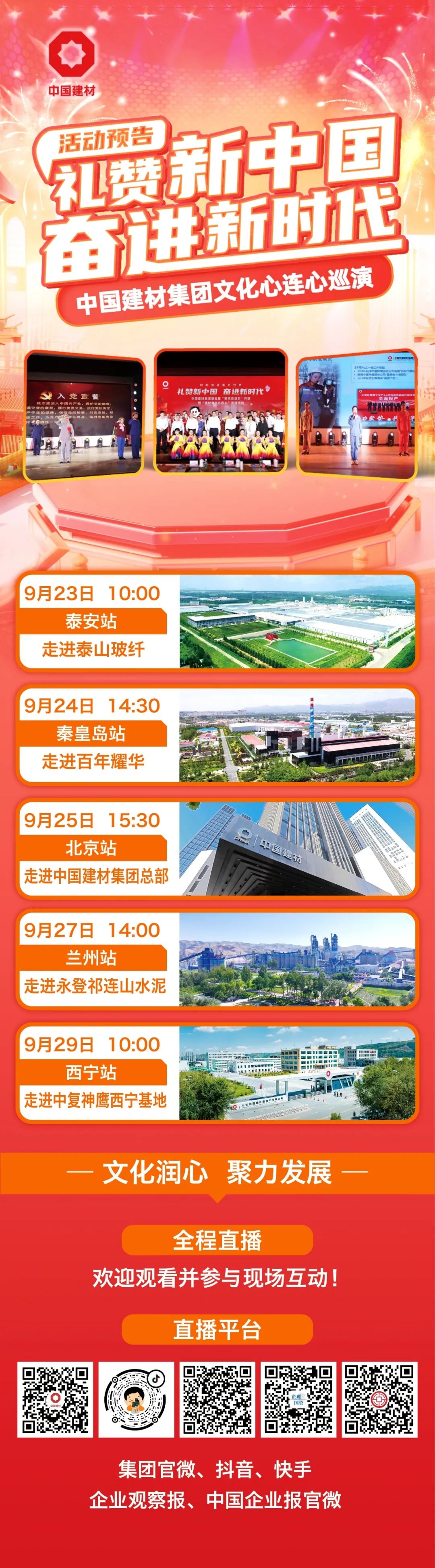 礼赞新中国 奋进新时代|中国建材文化心连心巡演9月23日再出发!