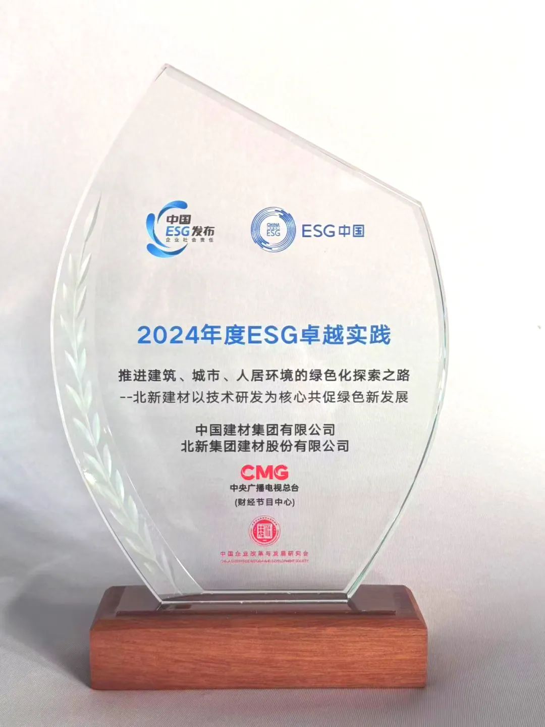 近日,以“赋能新质生产力,共创可持续未来”为主题的ESG中国·创新年会(2024)在北京首钢园召开,中央广播电视总台财经节目中心现场发布了《2024年度ESG卓越实践报告》。北新建材凭借《推进建筑、城市、人居环境的绿色化探索之路——北新建材以技术研发为核心共促绿色新发展》案例入选。此次征集共有458家企业报送案例,31个在ESG领域进行了卓越实践的优秀企业案例被收入报告。
