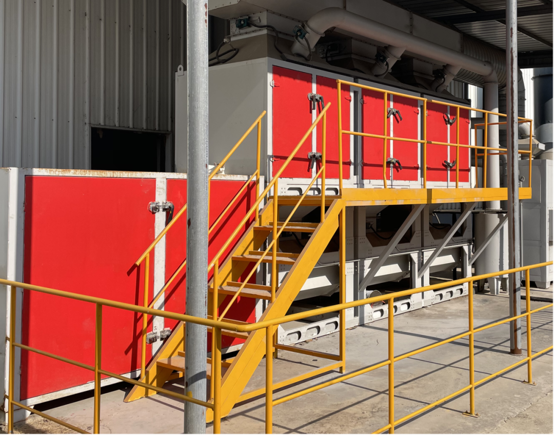 公司VOCs治理采取“整体大循环+局部小循环”思路,通过合理设计引风风量,使各车间始终处于微负压状态,从而实现新风持续补入和置换,同时通过布置内循环吸附设备收集治理VOCs。公司历年来陆续配备高负压除尘系统、VOCs废气处理设备、催化燃烧系统、空气循环治理系统。确保实现VOCs气体有组织排放,达到国家环保要求。