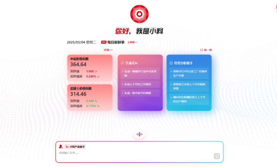 依托建材行业特性,DeepSeek显著提升“小料”产业大模型在灵活取数分析、跨流程协同分析、多场景融合决策等方面的性能表现。通过深度融合企业历史运营数据、行业级知识图谱及生产场景模型,构建覆盖建材行业研发、生产、质检、供应链等全价值链的智能化应用体系。全面赋能中国建材业务板块,切实推动企业数字化转型与智能化升级进程。