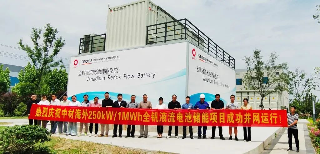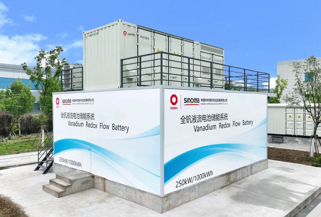 2025年5月16日,中国中材海外科技发展有限公司投资建设的SinoVess-250CS全钒液流电池储能系统在中国建材装备集团高端装备智造园实现并网运行。作为新型储能实验室的首个示范工程,该项目采用具有高安全性、长循环寿命等优势的全钒液流电池技术,系统额定功率达250kW,储能容量1MWh,年放电量约为50万kW·h,将为园区提供可靠的电力调峰和应急备用电源服务。后续将建设百兆瓦级“液流电池智能制造集成生产基地”,为高耗能行业绿色低碳转型提供标准化、模块化的SinoVess系统解决方案,以创新储能技术助力工业领域“双碳”目标的实现。