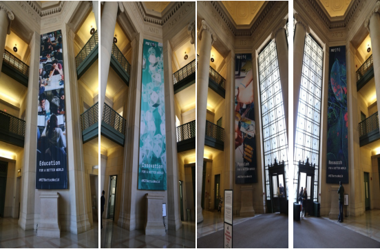 麻省的主楼分别挂有教育、创新、探索、激情作为学校的核心理念