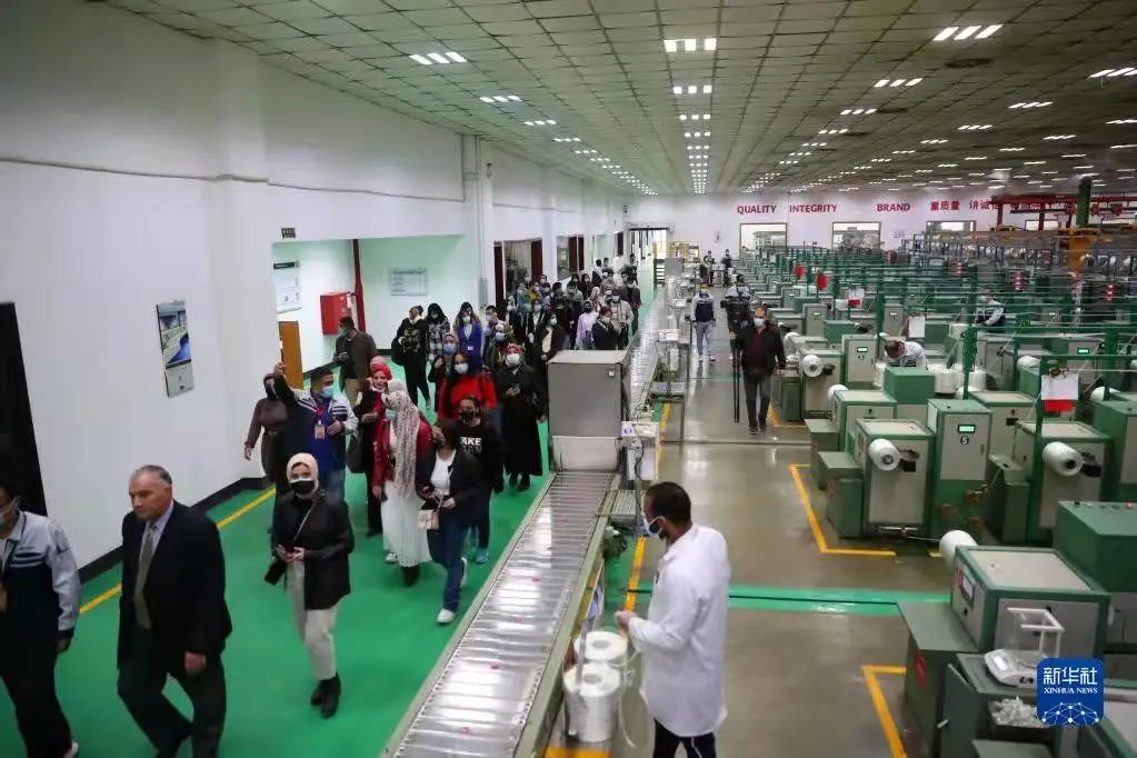 Egyptian students visit China's fiberglass giant manufacturer Jushi in Suez Province, Egypt, on Dec. 30, 2021. (Xinhua/Sui Xiankai)