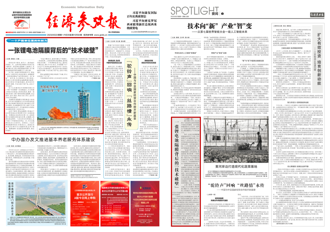 稳增长 创价值 | 《经济参考报》头版头条点赞中材锂膜创新升级、技术破壁